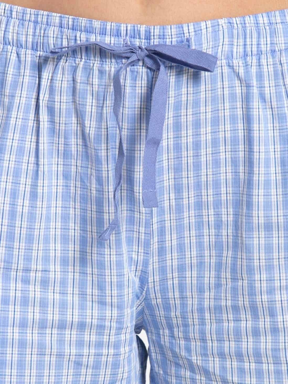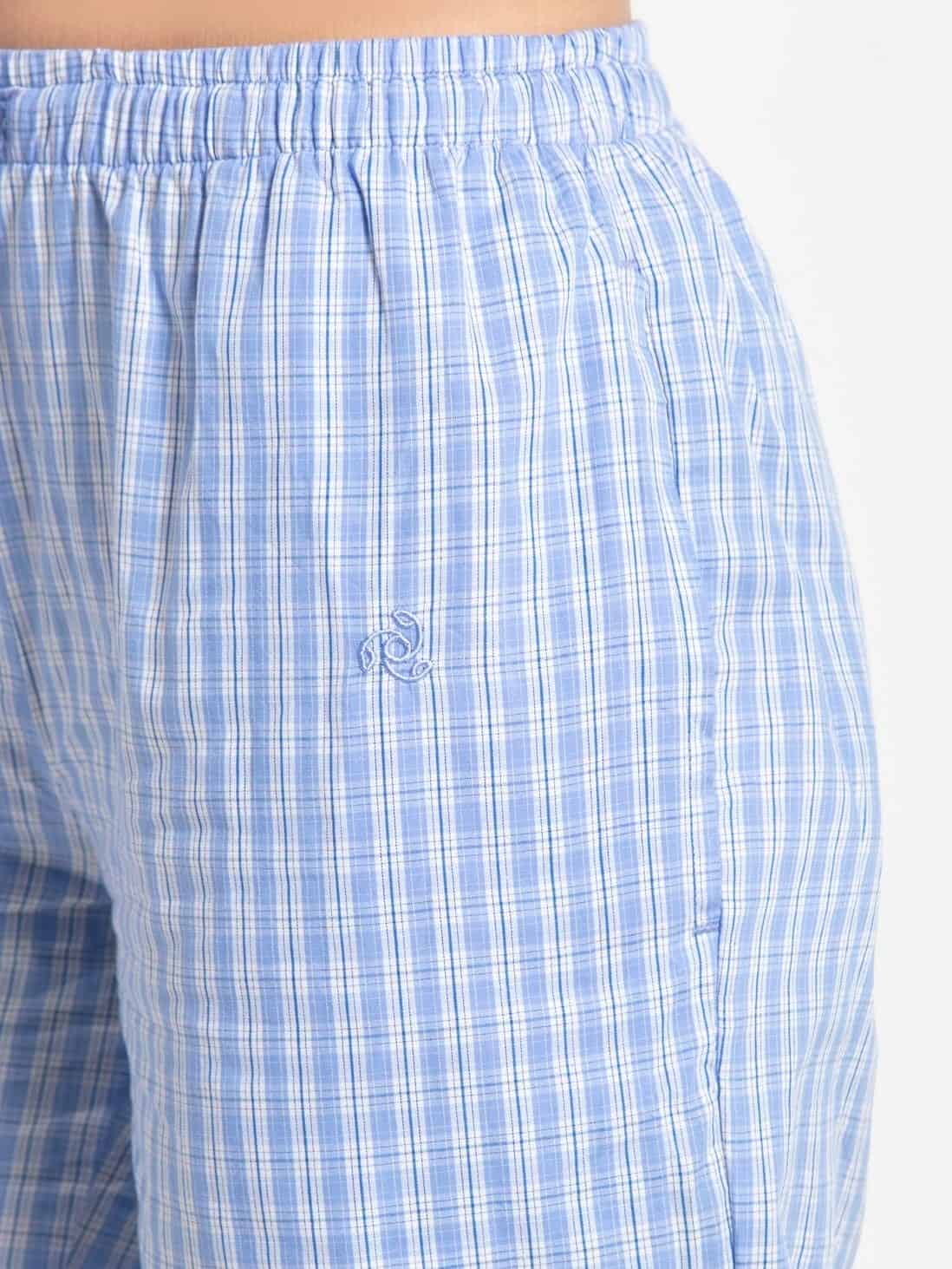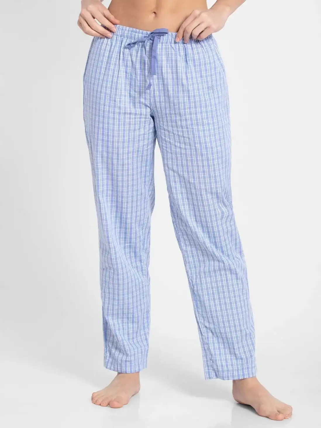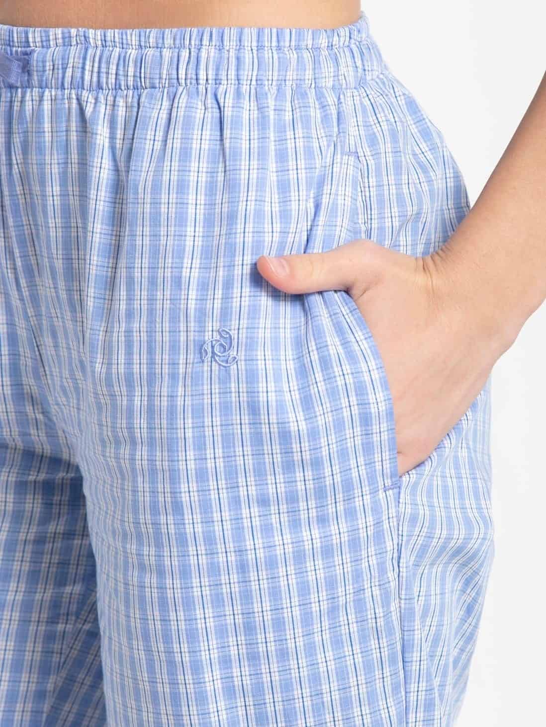 Jockey Pyjama for Women with Side Pocket & Drawstring Closure - Iris Blue Assorted Checks, Style #RX06 (Disclaimer: The product delivered may not of the same pattern)