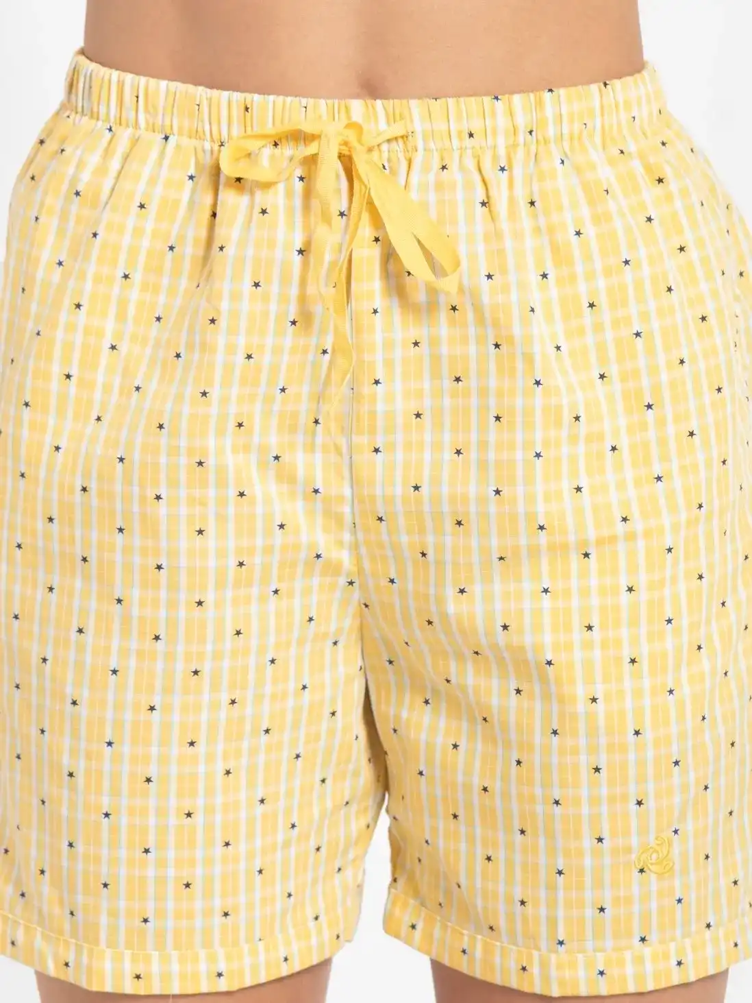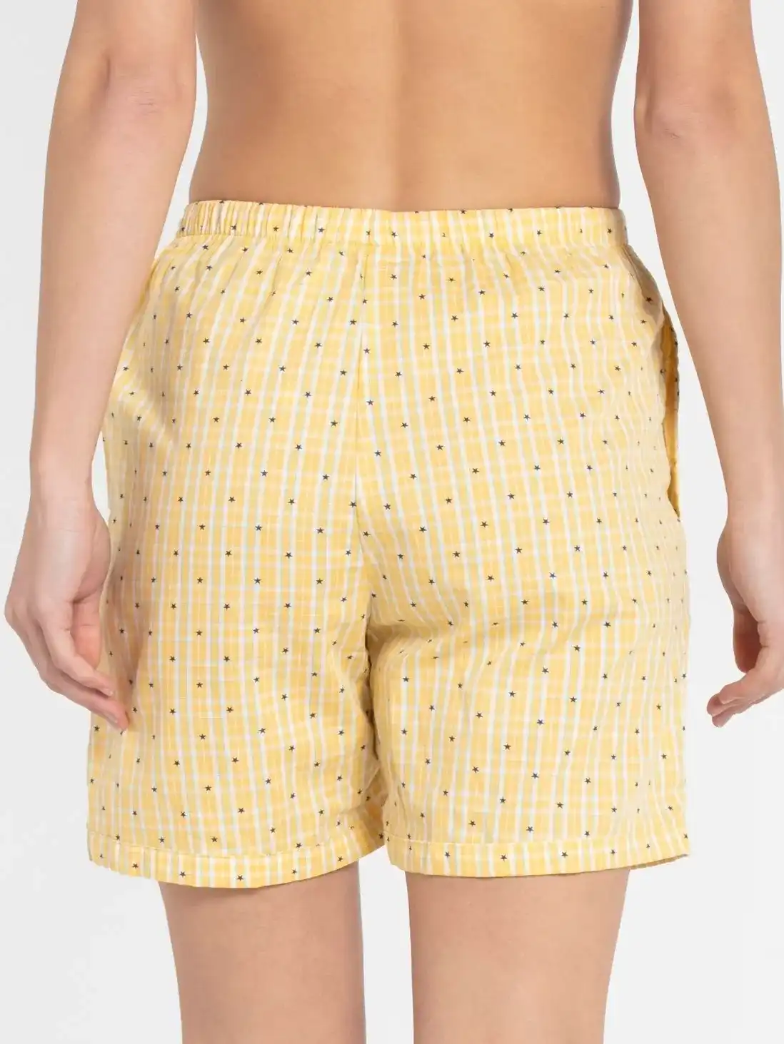 Jockey Shorts for Women with Side Pocket & Drawstring Closure - Banana Cream Assorted Checks, Style #RX15 (Disclaimer: The product delivered may not of the same pattern)