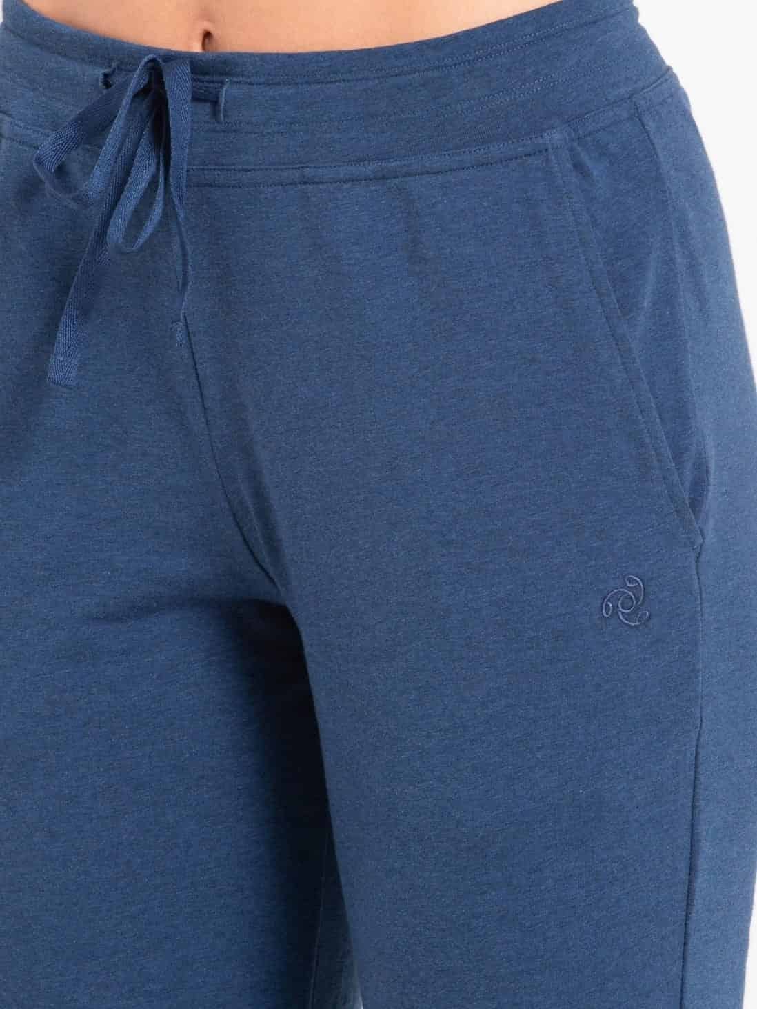 Women's Super Combed Cotton Elastane Stretch Slim Fit Trackpants With Side Pockets Vintage Denim Melange #1301