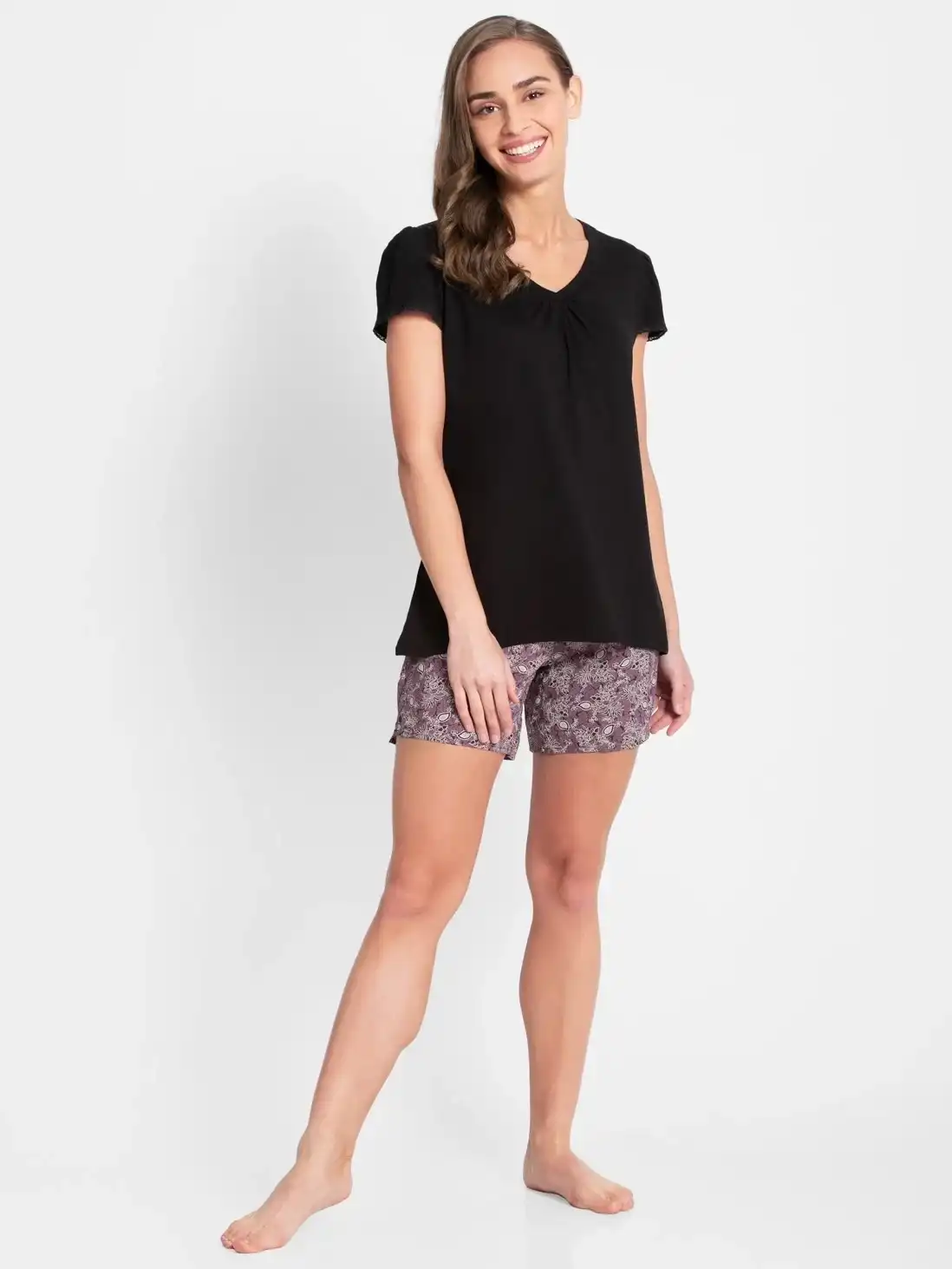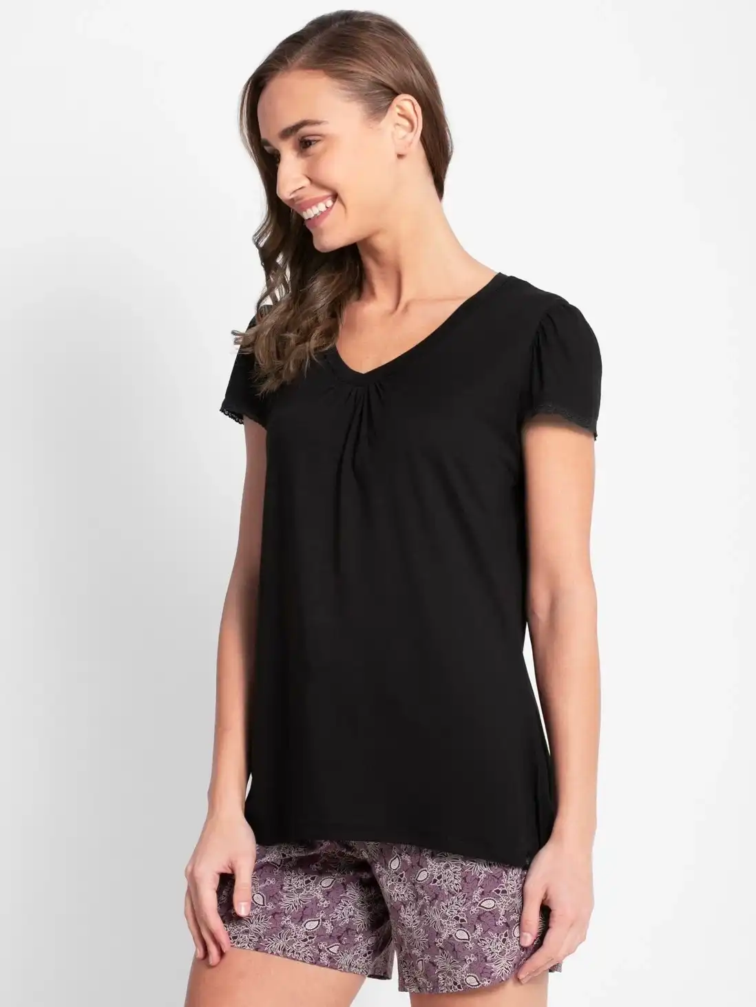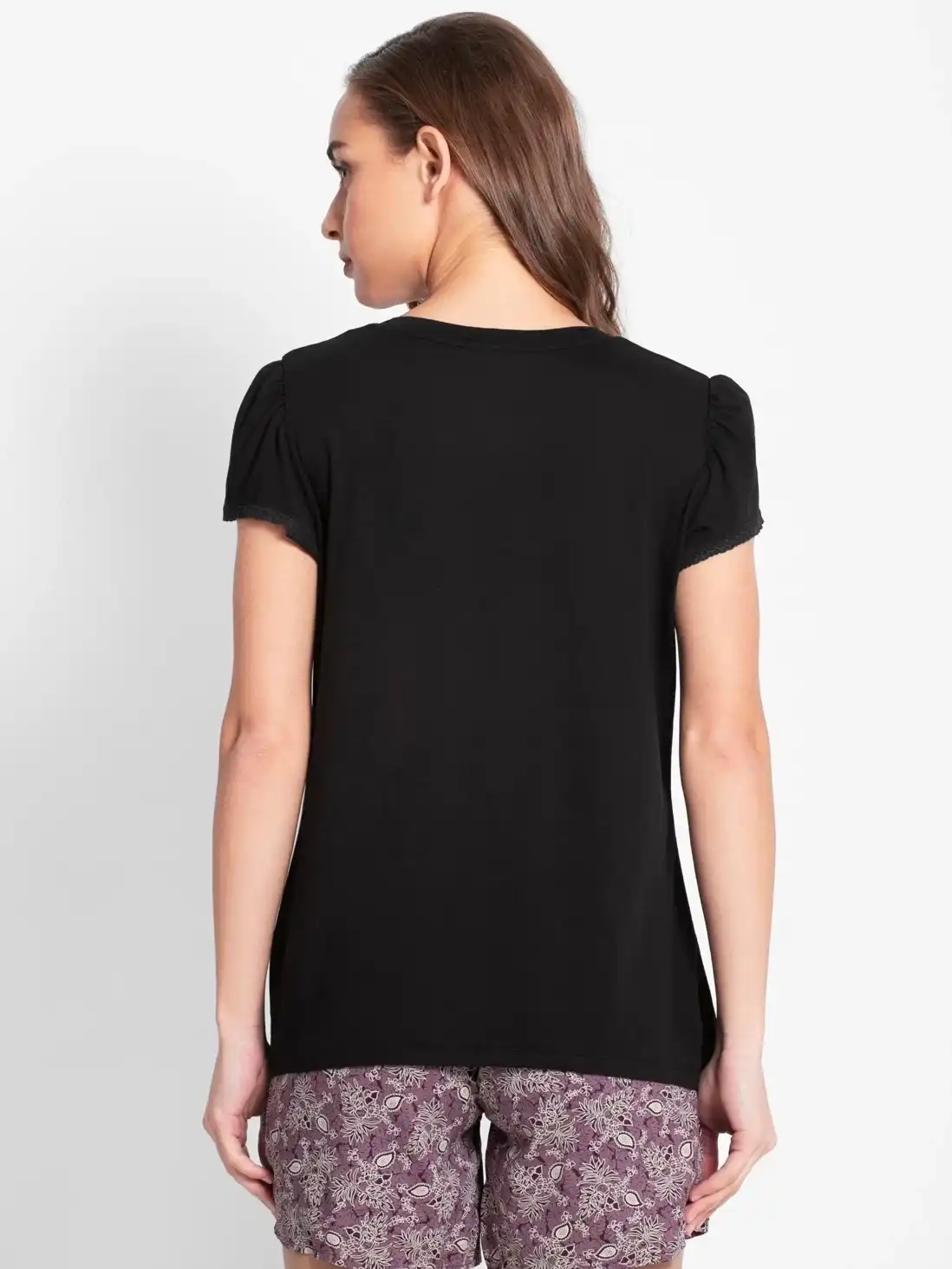 Jockey Ultra-soft V Neck Half Sleeve T-Shirt for Women - Black, Style #RX12
