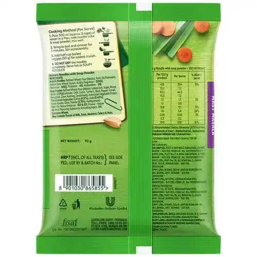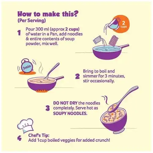 Knorr Soupy Mast Masala Noodles has the goodness of soup along with the fun of noodles, making it a fun evening snack. Knorr Soupy Noodles are spicy and slurpy and make for a tasty meal. At Knorr, we love flavours! Our Chefs have crafted Knorr Soupy Mast Masala Noodles with great care and precision, combining the finest ingredients in perfect combinations. Our Noodles are made with 100% real vegetables and are free of any added preservatives. Knorr Soupy Mast Masala Noodles are the perfect choice for making snack time fun and enjoyable. Your favourite Knorr Soupy Noodles are available in three pack sizes - singles for small hunger pangs and multipacks of 2 and 4, if you feel like sharing! Now also enjoy your favourite instant noodles in exciting Chinese Flavours - Knorr Chinese Schezwan, Knorr Hot & Spicy Noodles.