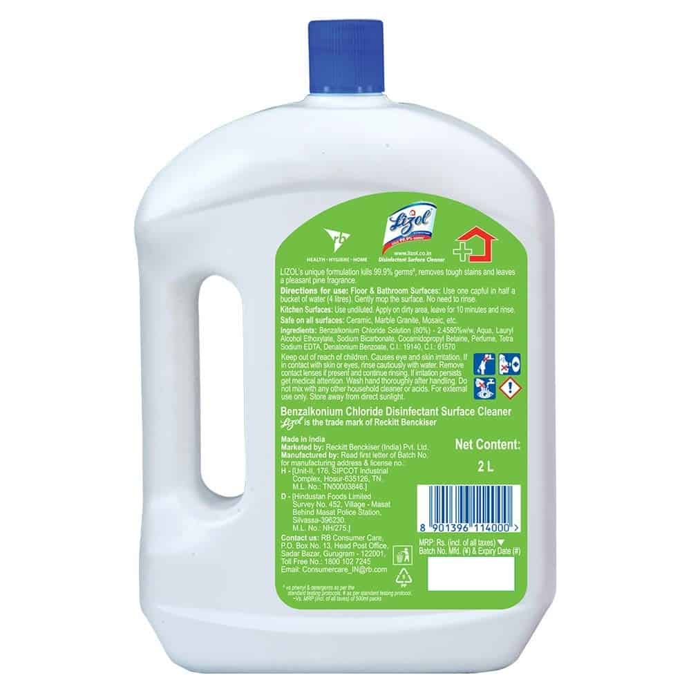 Lizol Disinfectant Pine Surface & Floor Liquid Cleaner, 2 Ltr