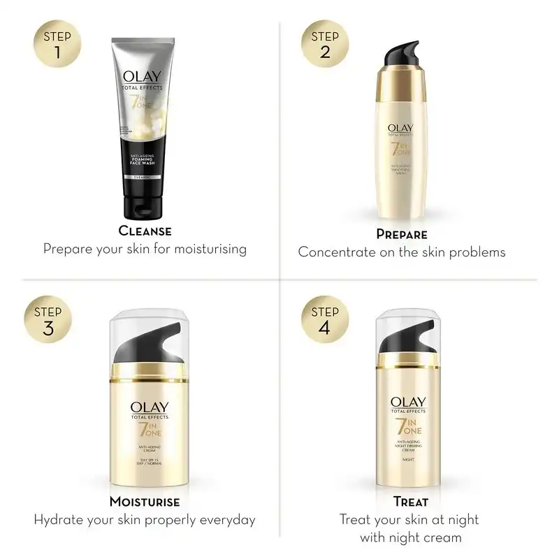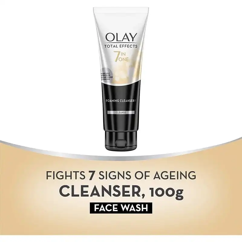 Olay Total Effects 7 In One Foaming Cleanser that washes away dirt to bring out a natural glow.