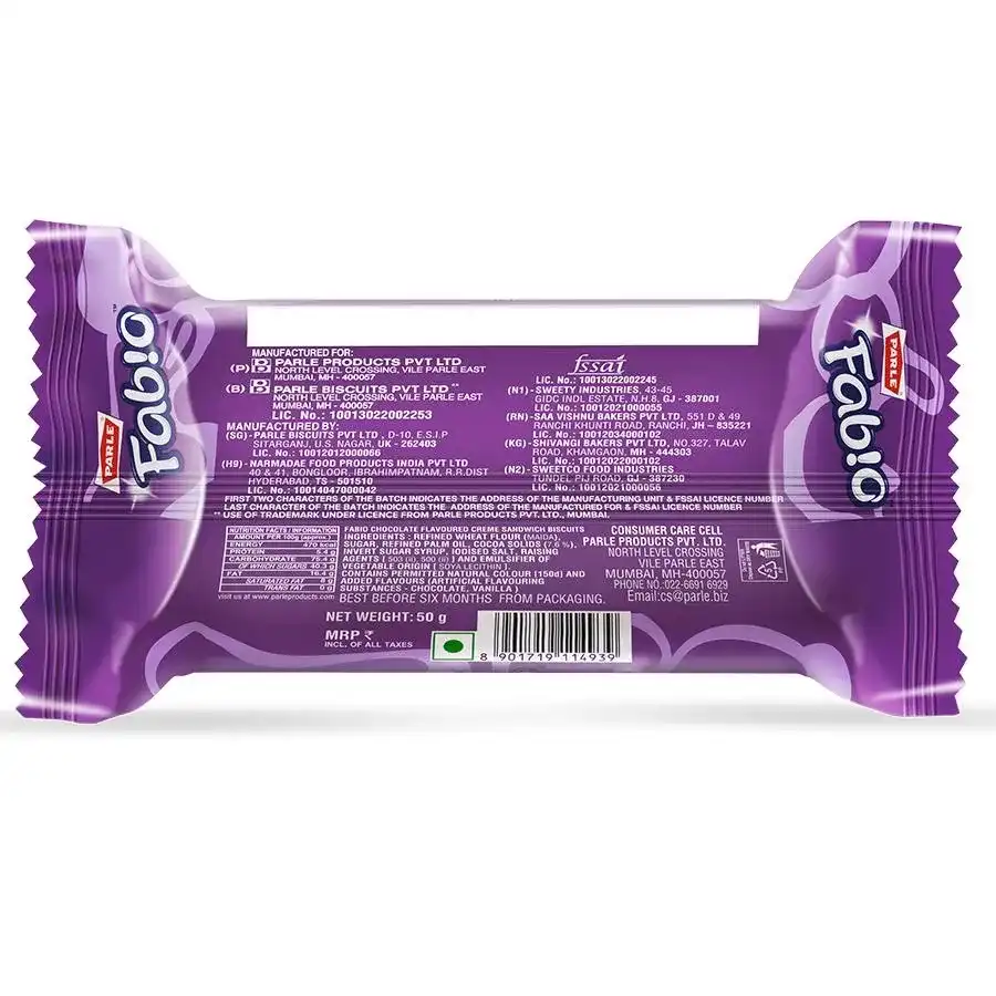 Parle Fabio Chocolate Creme Sandwich Biscuit is filled with rich chocolate cream between dark cocoa biscuits. Enjoy the rich, smooth taste of chocolate crème with the bold taste of crunchy chocolate biscuits. It is a perfect anytime snack for school, midday or evening snack. Crunchy cocoa biscuits and equally soft & sweet cream which will make you want more.