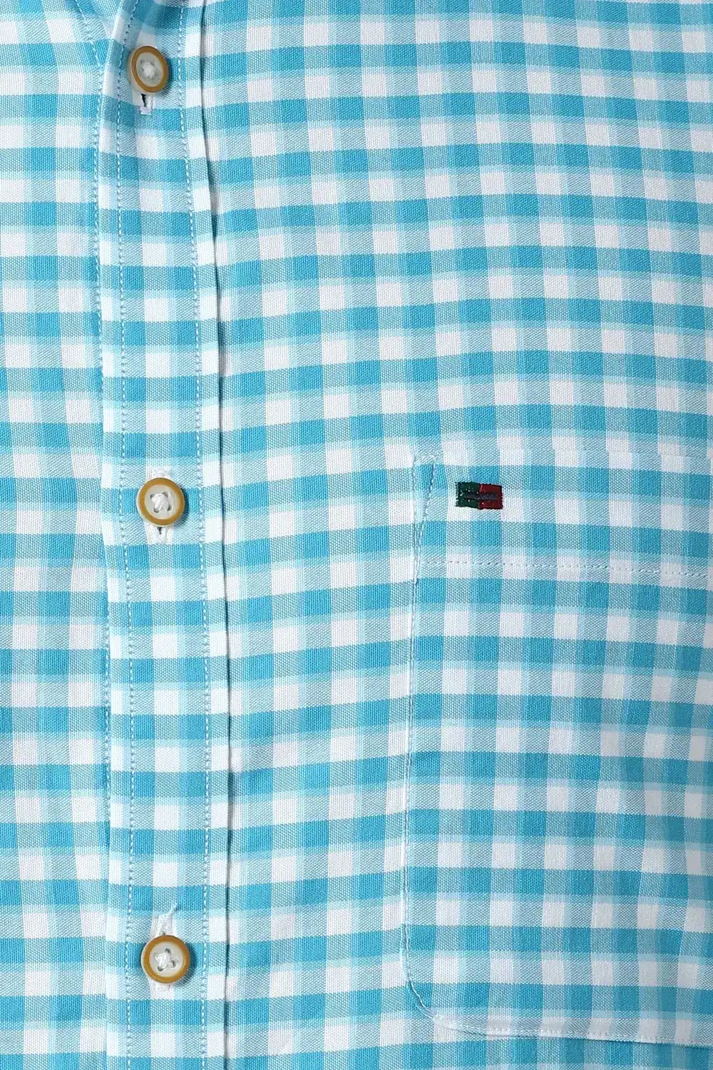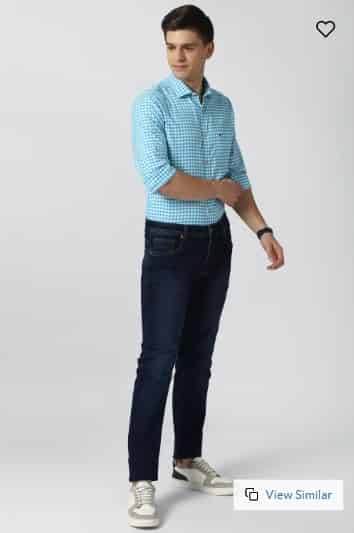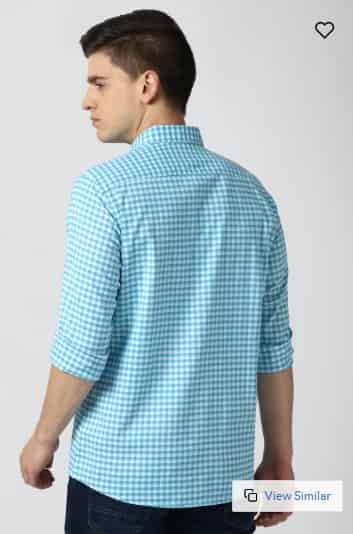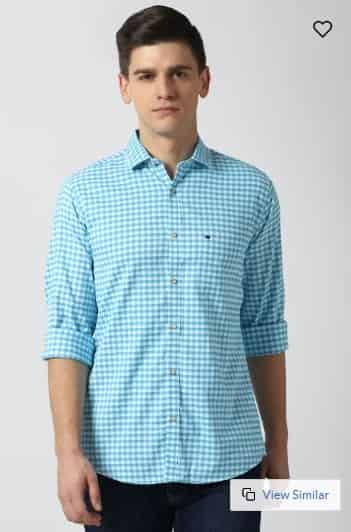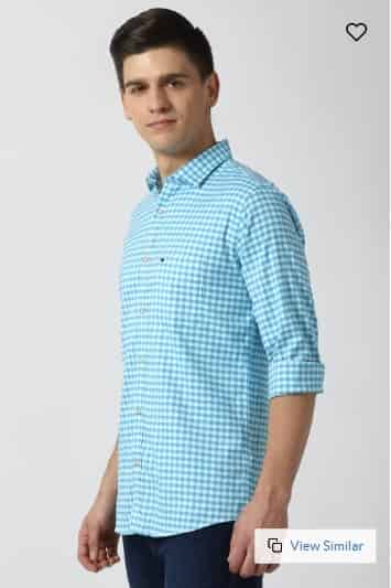 Let your style do the talking in this blue check casual shirt from Peter England Casuals by Peter England.