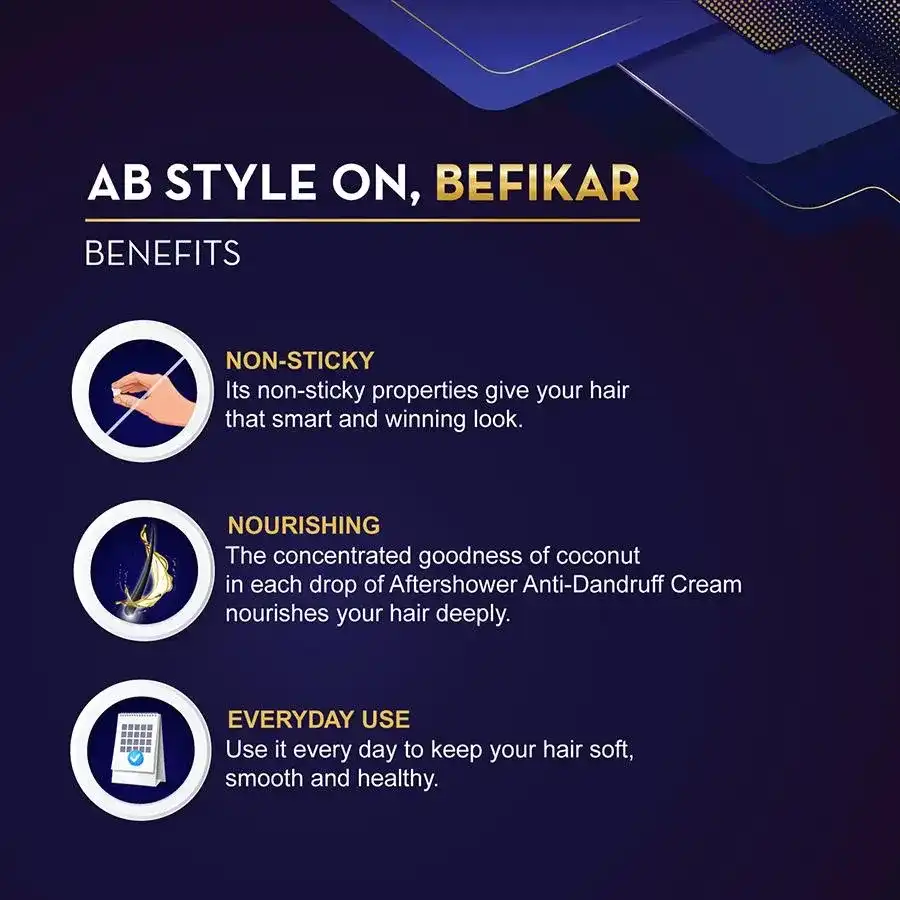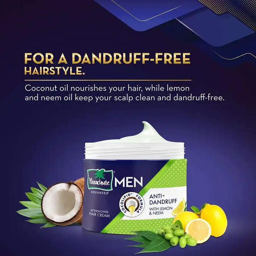 Parachute advanced‚ after shower‚ anti-dandruff hair styling cream for men‚ gives all day‚ dandruff protection. Get‚ dandruff-free‚ styled hair every day with parachute advansed‚ after shower‚ anti-dandruff hair cream. The goodness of‚ lemon, neem and tea-tree oil‚ to provide‚ relief from itching caused by dandruff. Contains coconut milk proteins to give you healthy and lively hair. Along with conditioning, these proteins will work all day to‚ fight dandruff‚ and keep it away from coming back as well. It provides the perfect balance of nourishment and style with its unique, natural‚ cocolipid‚ formula that gives hair concentrated‚ coconut nourishment‚ right from the roots.