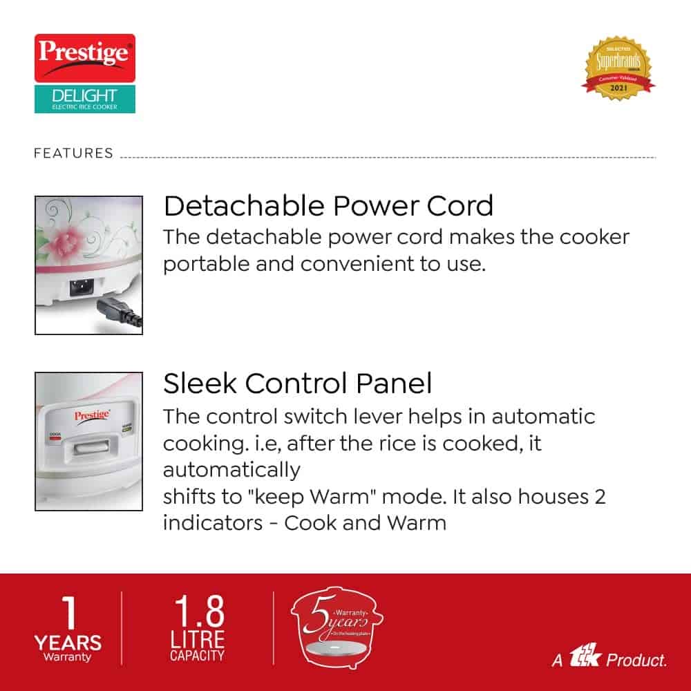 Sleek Control Panel - The control switch lever helps in automatic cooking. i.e, after the rice is cooked, it automatically shifts to "keep warm" mode. It also houses 2 indicators - cook and warm.