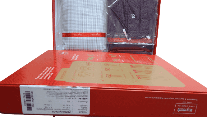 • Box Gift Packing II Original Raymond Fabric Stylish Ready To Stitch Pure Cotton Shirt And Trouser Fabric Set From The House Of Raymond