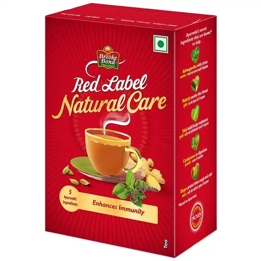 • Red Label Natural Care is a tasty masala tea with 5 ayurvedic ingredients such as ginger, tulsi, cardamom, mulethi & ashwagandha