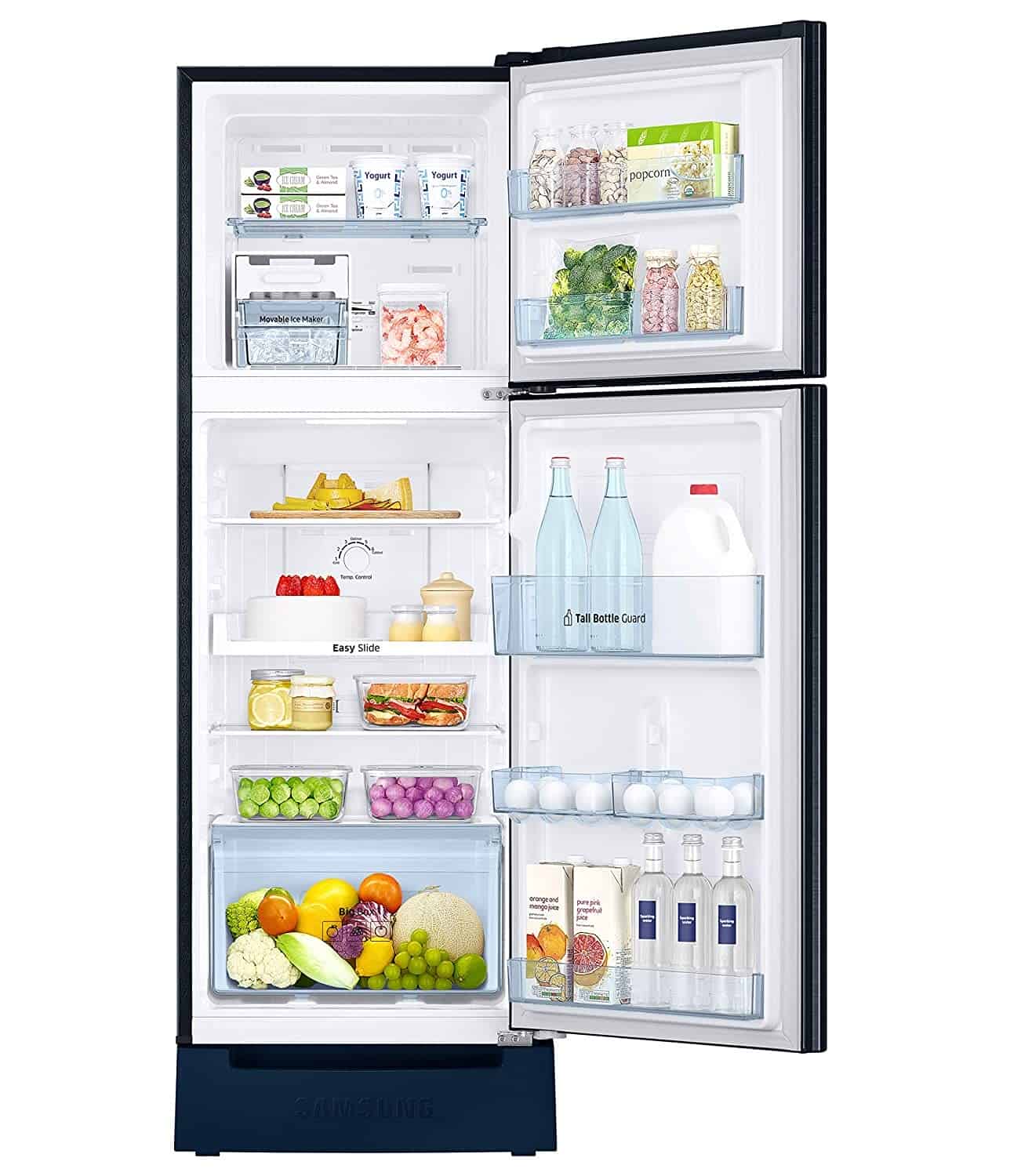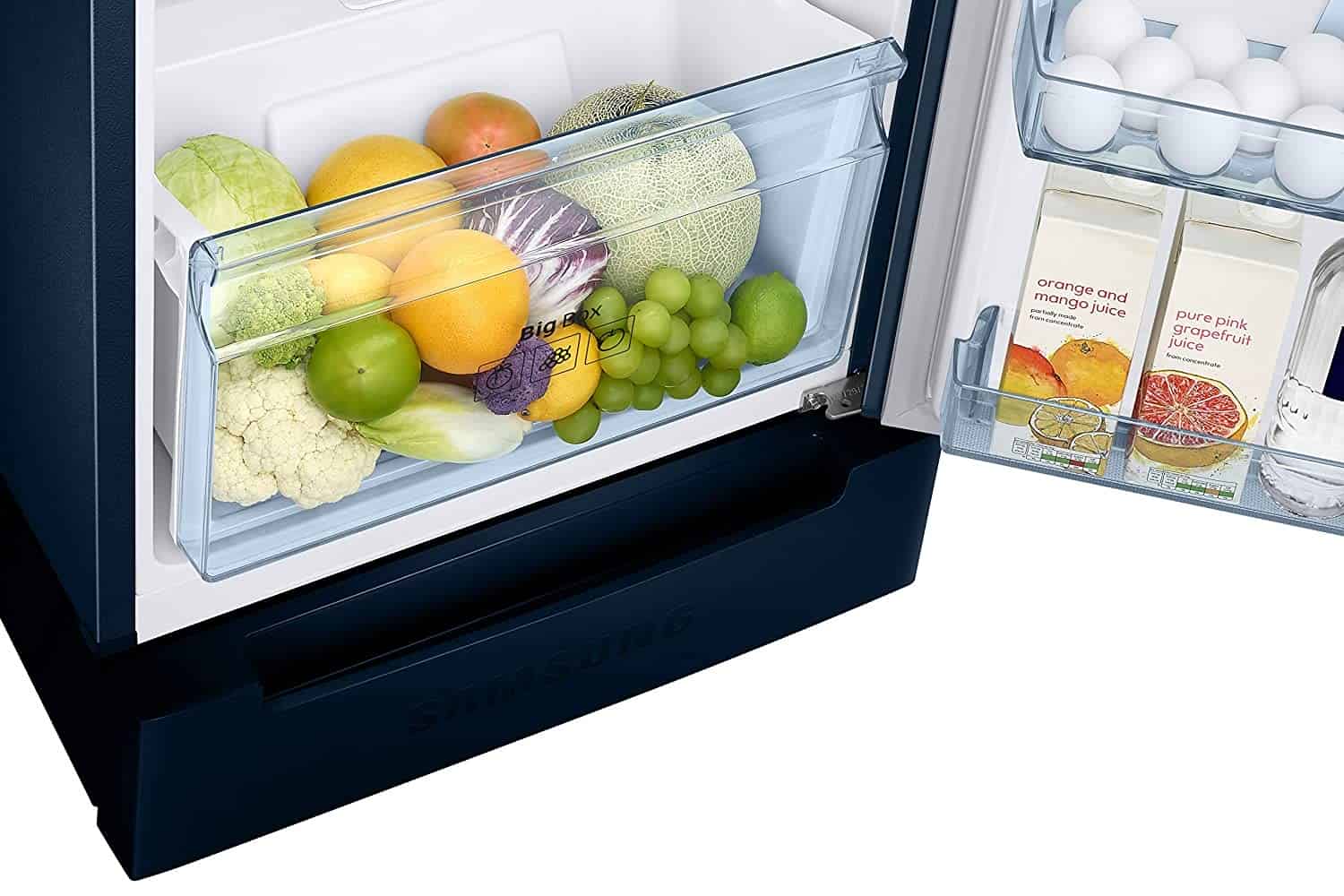 Samsung 253 L 2 Star Inverter Frost Free Double Door Refrigerator(RT28A3122U8/HL, Base Stand with Drawer, Saffron Blue)
