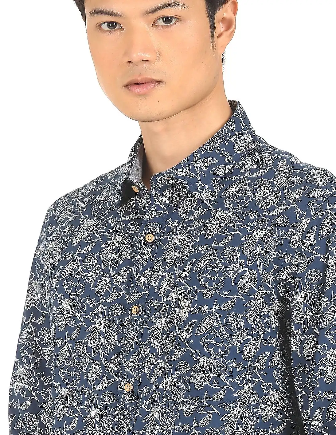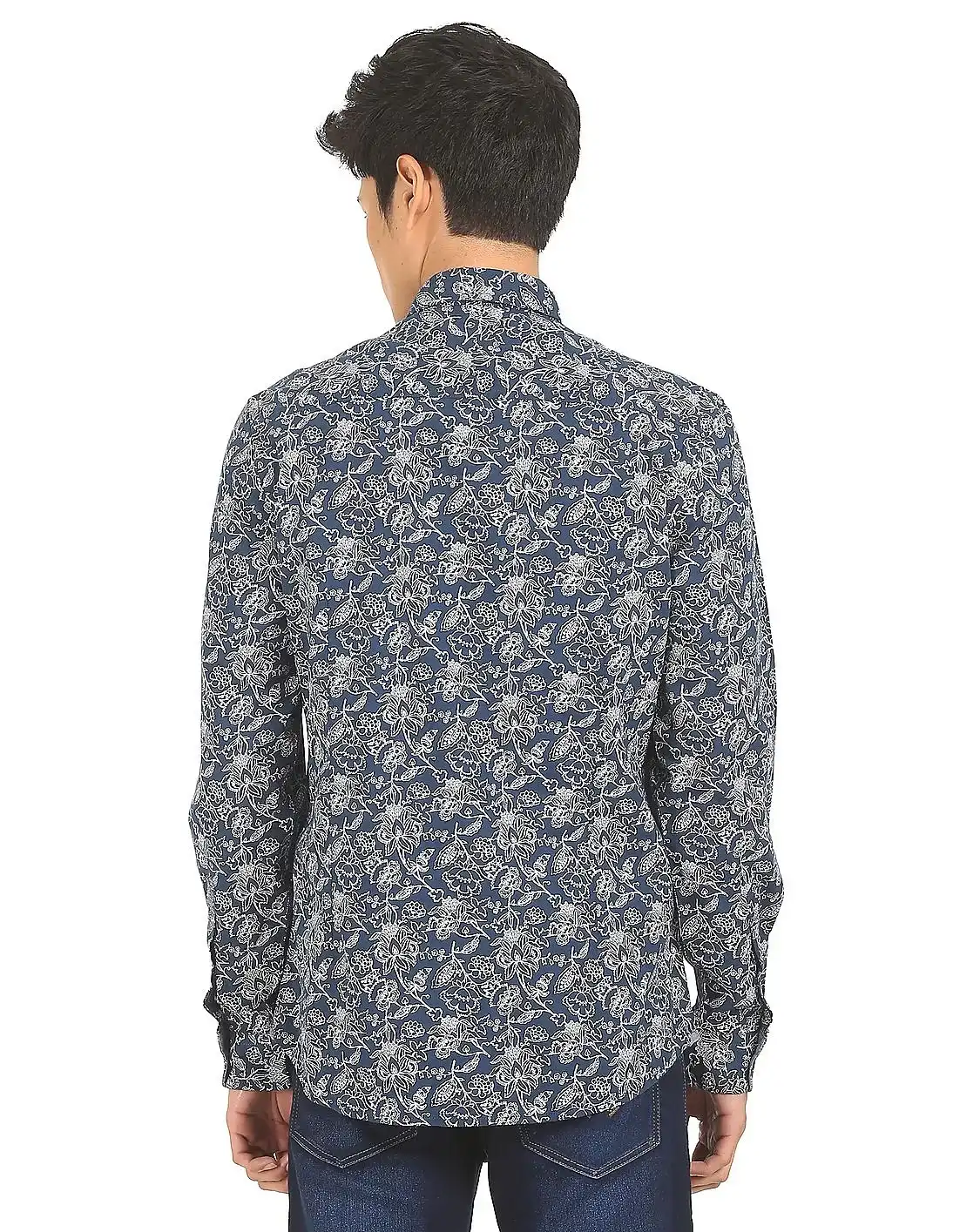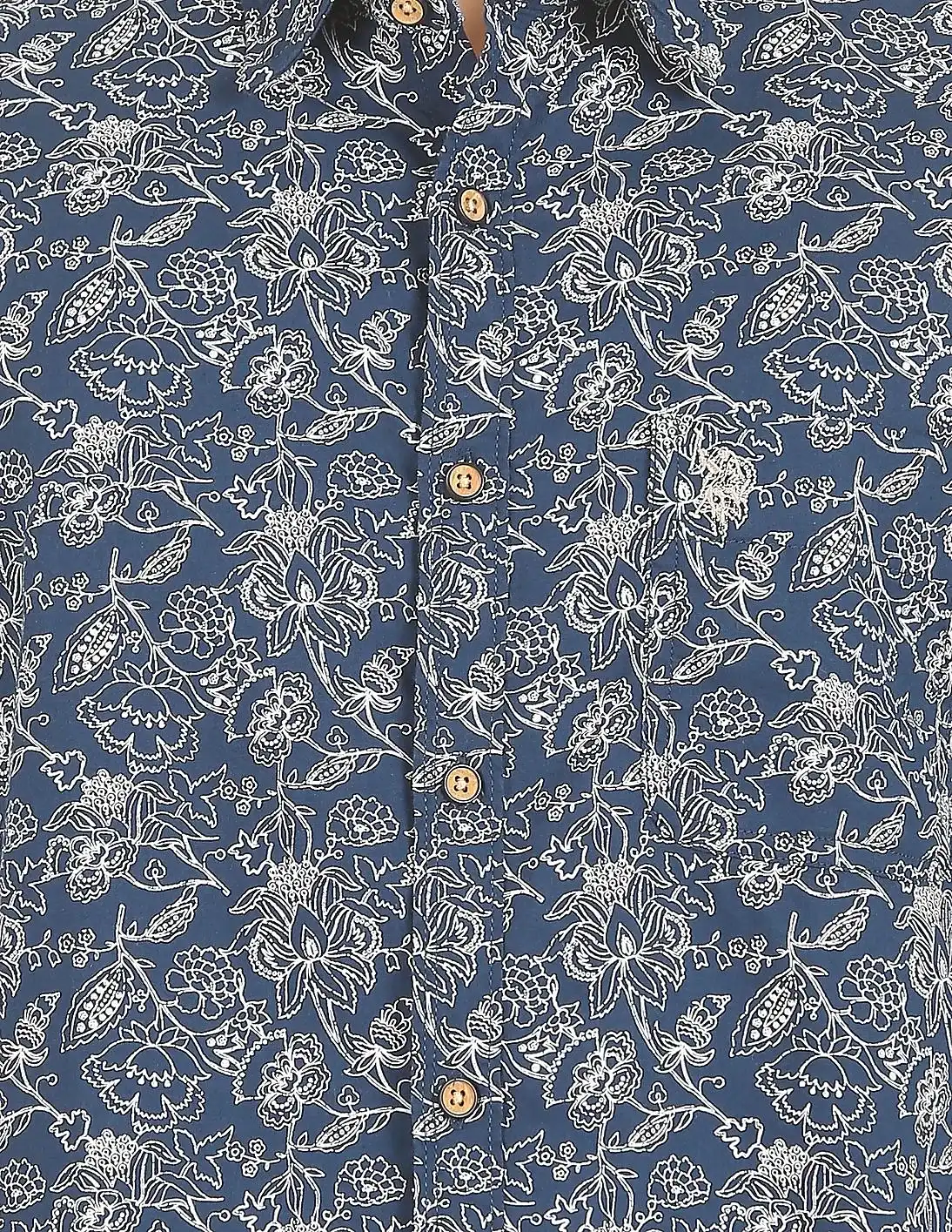 U.S. POLO ASSN. Men Navy Spread Collar Printed Casual Shirt(UDSHT0296)