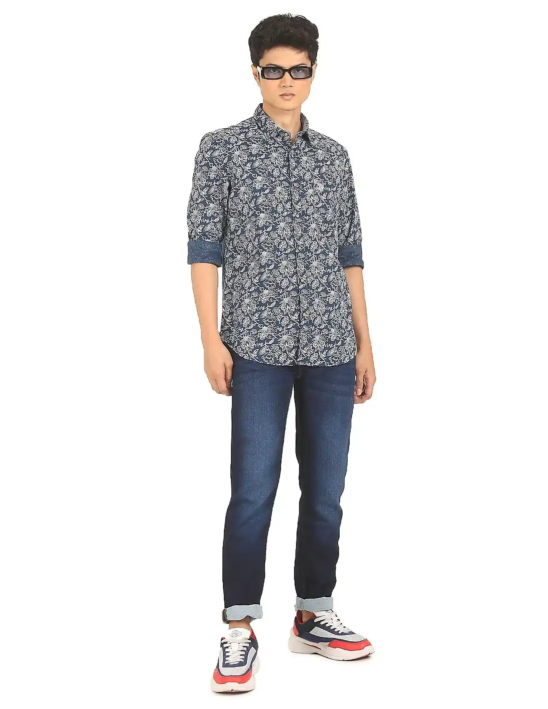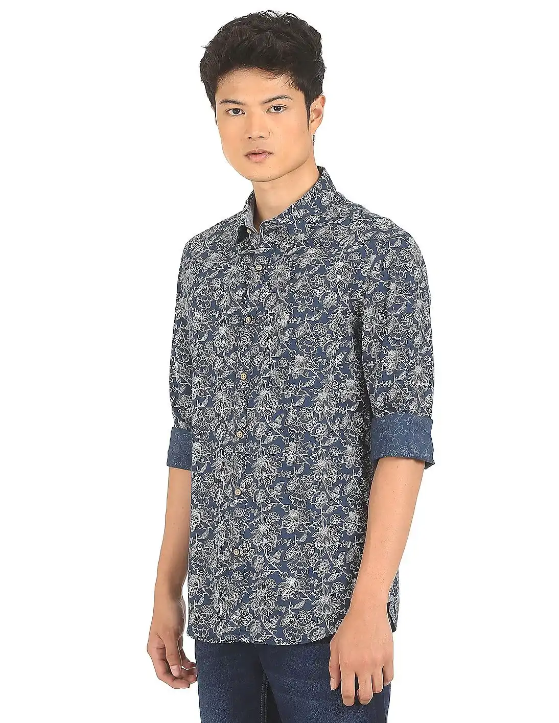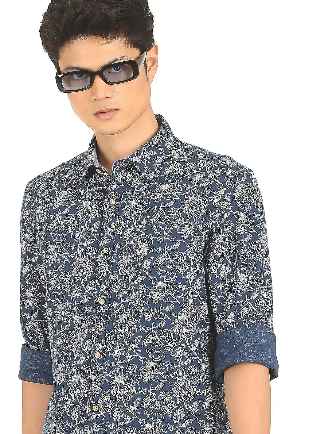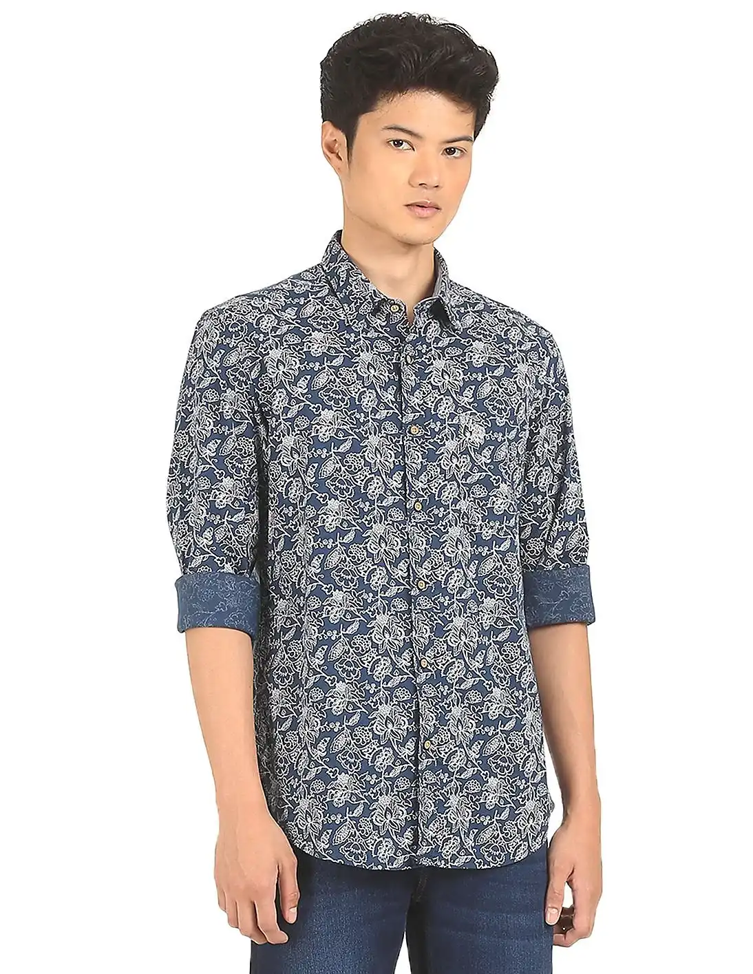 U.S. POLO ASSN. Men Navy Spread Collar Printed Casual Shirt(UDSHT0296)