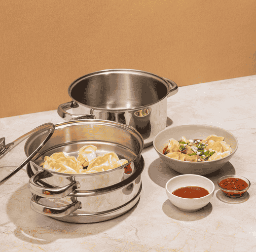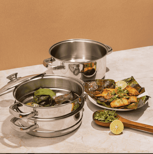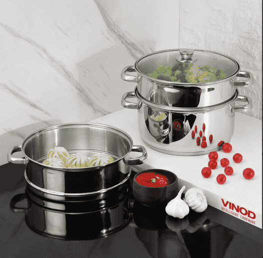 Steaming vegitables and meat are one of the best ways to enjoy a healthy meal. Steaming allows water vapor to heat food without loss of nutrition so a good quality steamer is must have kitchen essential. The Vinod three tier stainless steel steamer keeps the health factor in check.