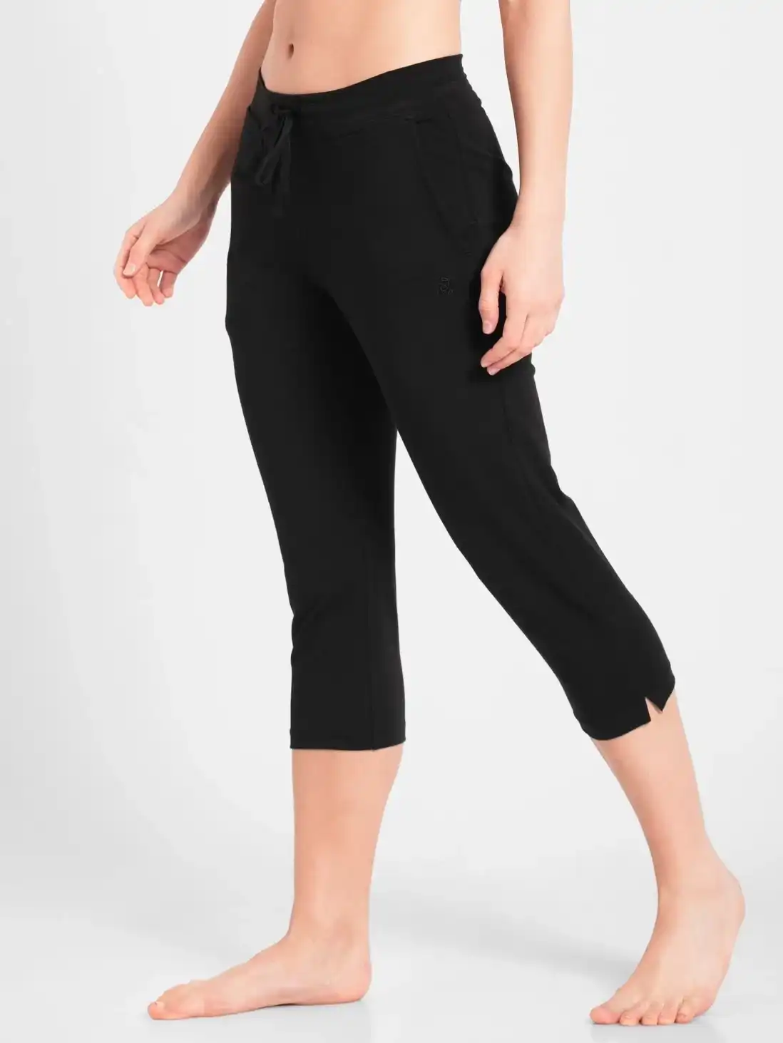 Jockey Capri Pants for Women with Pocket & Drawstring Closure, Black