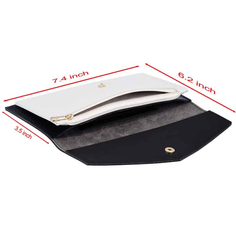 • .Dimension-Height: 3.5 (in) ; length: 7.7 (in); depth: 0.59 (in).Fits all phone sizes up to an iPhone X and Samsung Galaxy Note 8