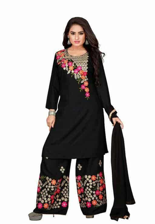 XXL (Bust Size: 44 in, Shoulder Size: 16 in, Kurta Waist Size: 40 in, Kurta Hip Size: 46 in, Kurta Length Size: 42 in, Bottom Waist Size: 34 in, Bottom Hip Size: 28 in, Bottom Length Size: 40 in, Duppatta Length Size: 2.05 in)
